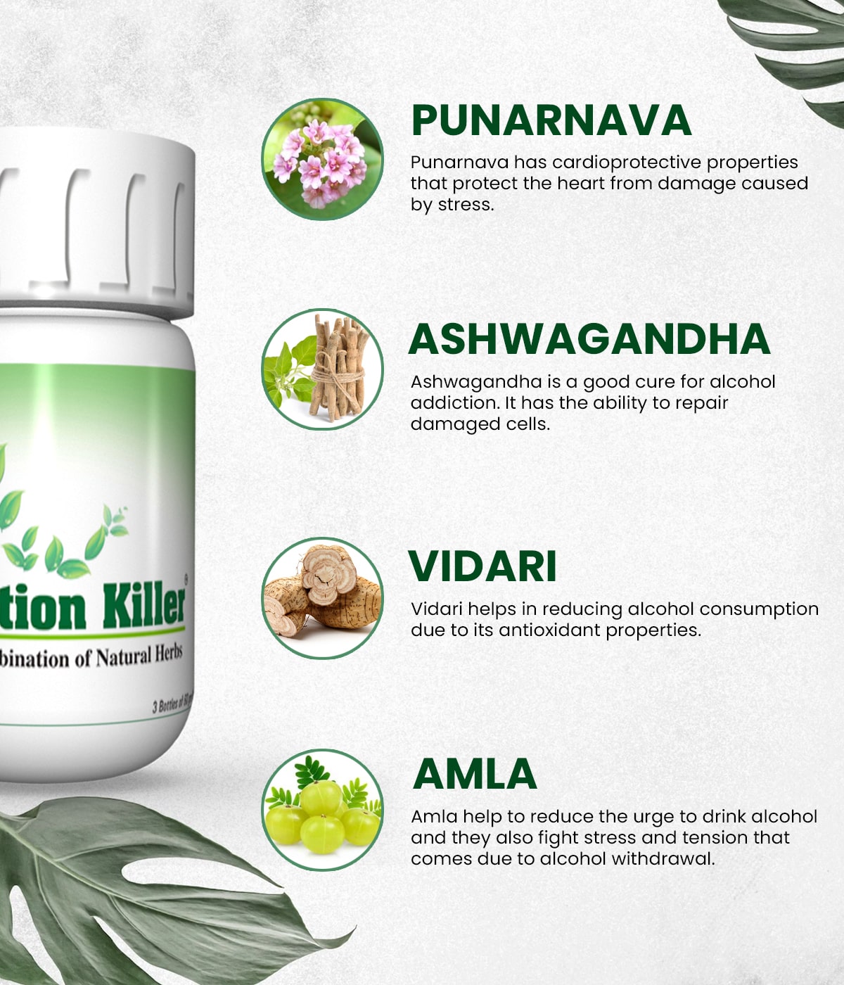Addiction Killer is an ayurvedic treatment that naturally combats addiction's causes and frees people from their addiction captivity.